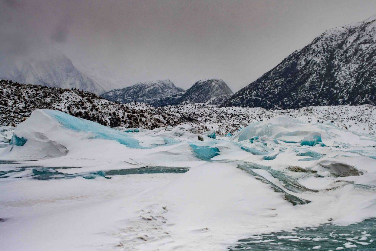这里不是冰岛,是来古冰川,世界三大冰川之一。来古,在藏语里便是隐藏着的世外桃源般的村落。初见来古冰川,犹如眼前出现了如雪般纯洁的倾城佳人。海拔四千二百米的高原提供了丰沛的降雪,时光悄悄地将积雪堆叠,压力形成冰川冰,就连阳光也偏爱她,散射出海一般的蓝色,让人沉醉其中,无法自拔。