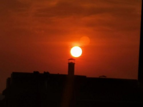 想要拍出金黄色或者红色的太阳,时间和地点要掌握好,才有时间拍摄好看的太阳。站在窗前拍摄的日出。欢迎朋友们欣赏美丽的日出。(手机拍摄原图)