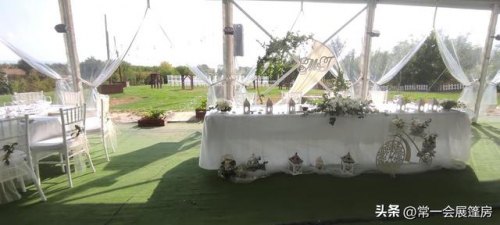 有一些婚庆公司借鉴欧洲的户外婚礼模式,在户外举行婚礼仪式,在专门搭建的婚庆篷房内进行婚宴的流程。国内的户外婚庆模式更加简介,搭建篷房后,直接在婚庆篷房内进行婚礼仪式以及婚宴。