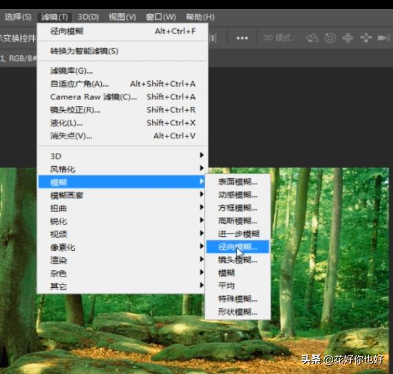 2.滤镜-模糊-径向模糊,数值调为最大,模糊方法为缩放,品质好,右边的线稿白色预览图可根据实际情况调整光源位置