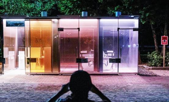 而且这些厕所所放置的位置,还是在一些公园的内部,就显得与公园格格不入了。但其实厕所的玻璃,用了一种非常特殊的材料,只要用户在进入厕所锁门以后,厕所玻璃就会变成雾面磨砂状,外面的人是无法看到里面。