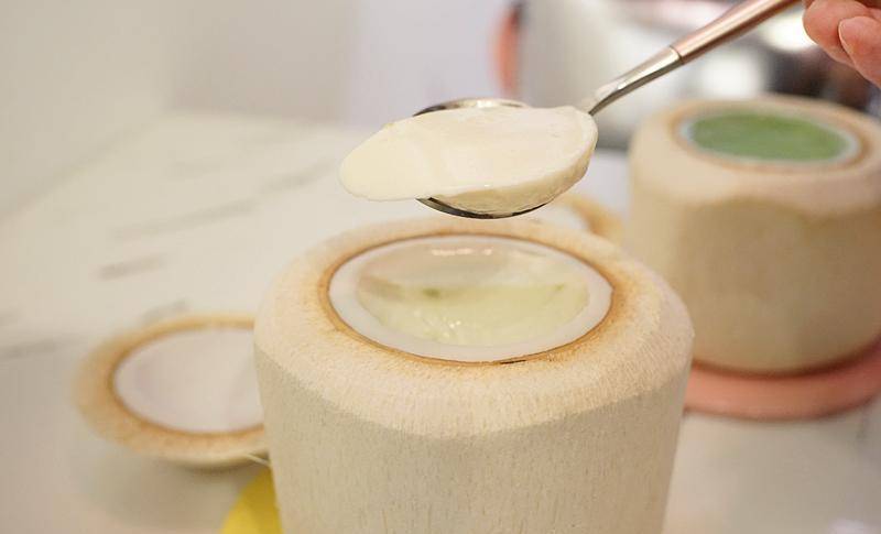 椰子冻是用椰汁和椰奶等制作而成,口感丝滑细腻,香味浓郁,清甜可口,让人赞不绝口。