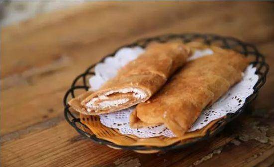 高粱卷是用高粱面饼卷上椰丝油炸而成的,口感酥脆,椰香味扑鼻,味道独特。尝上一口,给人满满的幸福感。