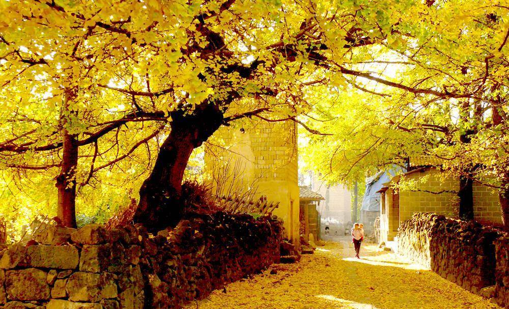 银杏村位于固东镇,这里有云南最大和最古老的银杏林。待到深秋时节,这里呈现一片金色的世界,像是置身于童话王国般,让人沉醉。金黄色的叶片飘落在民宅上,地面也铺了一层厚厚的银杏叶,到处都是金黄的色彩,让人流连忘返,不知归路。