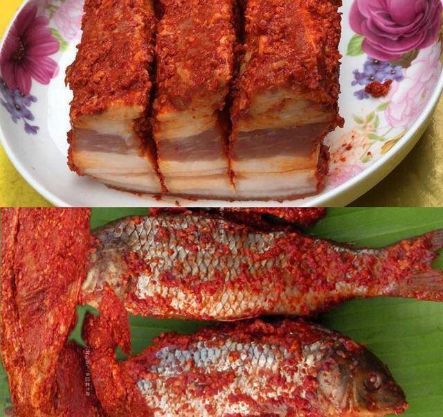将清洗过后的鲤鱼肚子里面塞满糯米饭以及辣椒各种调料,之后放在坛子里面,一层一层叠加起来,将坛口密封之后,大概半年的时间就可以吃了。腌肉也是这样子的方法,不仅如此,甚至在侗族,你还能找到腌制十年以上的食物,那些可是宝贝。
