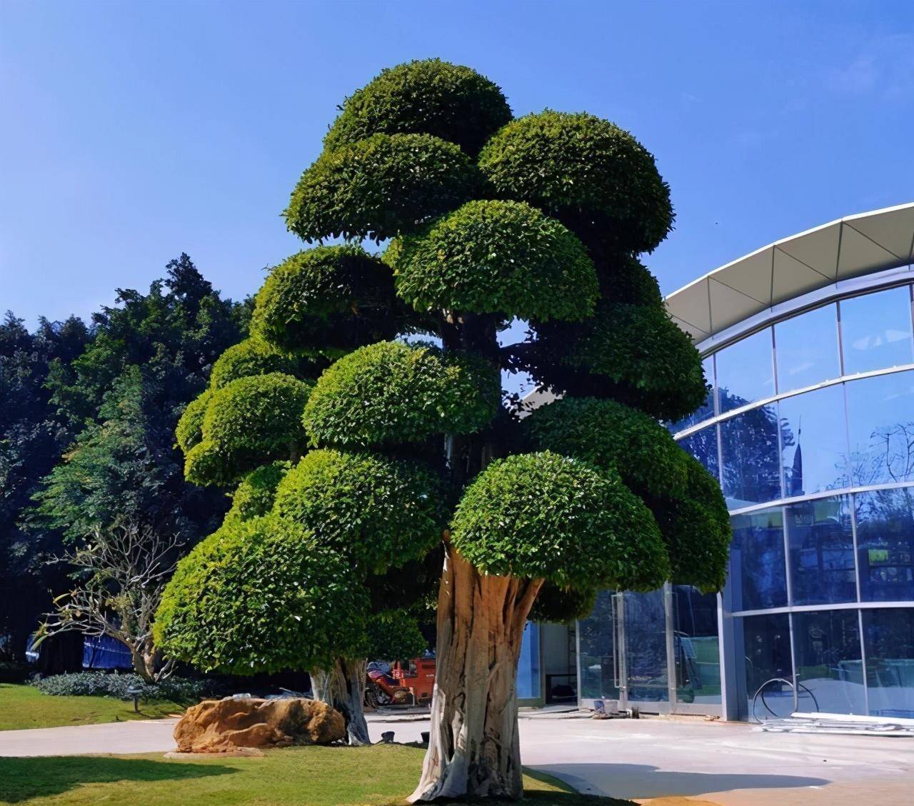 玻璃屋前造型奇特的小树,不是剪刀手爱德华修剪的,却是园艺师,用一颗颗美丽的心,打造而成,簇拥着的枝叶,仿佛天上的朵朵白云,左右相拥着,建成了一个个温暖的家,家中的故事更温馨了。