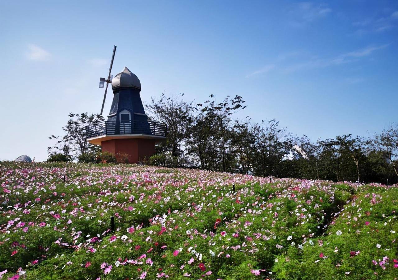 风车还在迎风转动着,田里的格桑花,开得正艳,粉粉的花朵,烂漫了整片田野,色彩缤纷的蝴蝶,扇动着轻盈的翅膀,飞舞在了花田中,不知岁月的流转,成了自然中可爱的小精灵,风吹来了淡淡花香,不馥郁却静心。
