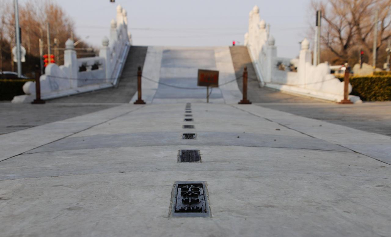 天桥左右各加建了一座石碑。这碑看着有点眼熟呀,这不就是照着永定门外燕墩上的那个石碑建的嘛!