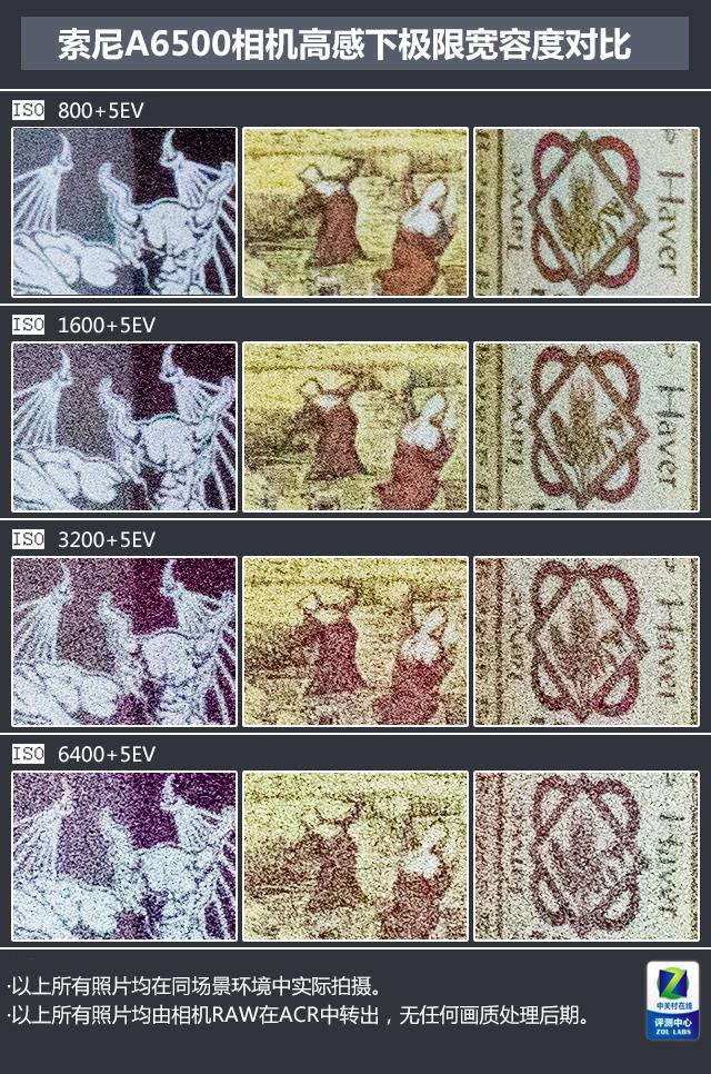 看过了相机的JPEG控噪表现,接下来我们再来看看相机在RAW格式下的控噪能力表现。RAW格式下少了机身控噪的干预,我们更能看出索尼对这枚CMOS的调校能力。那么新相机的表现如何呢?下面我们来好好看一看: