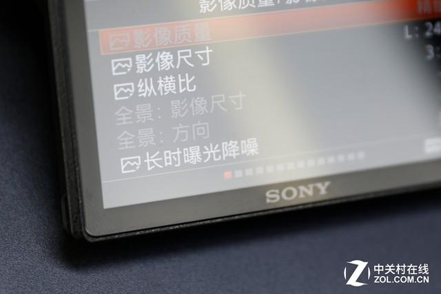 机身背面,我们能看到一块16:9宽屏比的3英寸显示屏,屏幕本身分辨率达到了92万画点,显示清晰度没有问题,只是因为是宽比屏幕,在照片取景时屏幕会留有黑区。此外因为屏幕很扁,也直接影响到了相机的菜单显示,每级菜单只能显示6项,这在很大程度上也限制了索尼的菜单的设计。相对的,索尼A6500的屏幕更适合用于视频拍摄取景(比例相同),可能是本身的设计侧重吧。