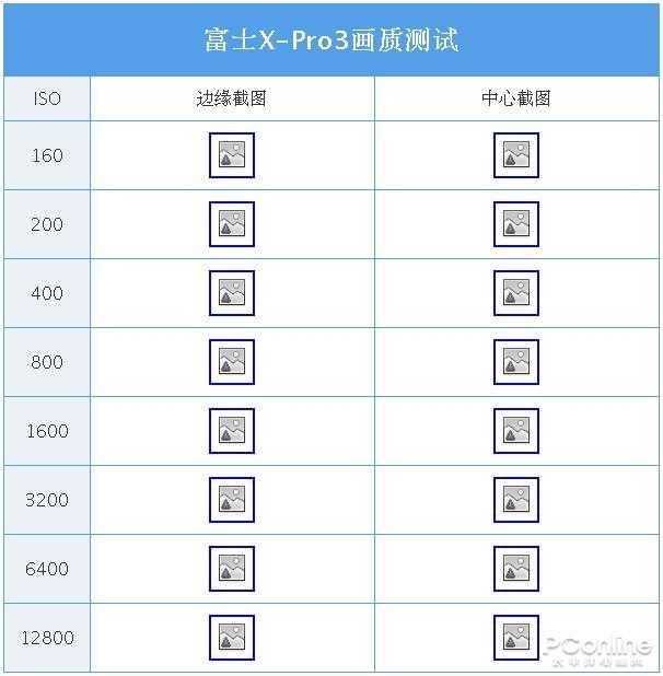 从上面的表格可以看出,富士X-Pro3在ISO160下的锐度锋利、细节清晰可见,画质最好。画质的分水岭是ISO3200,开始出现明显的涂抹感,细节有所损失。到了ISO12800后,画面还能保持相对干净,由此可以得富士X-Pro3的高感表现还算不错,在ISO3200以下拍摄即可,能应对大部分的拍摄需求。在昏暗的环境下可以使用大光圈镜头来拍摄,以获得更低的ISO感光度,提高照片的画质细节。
