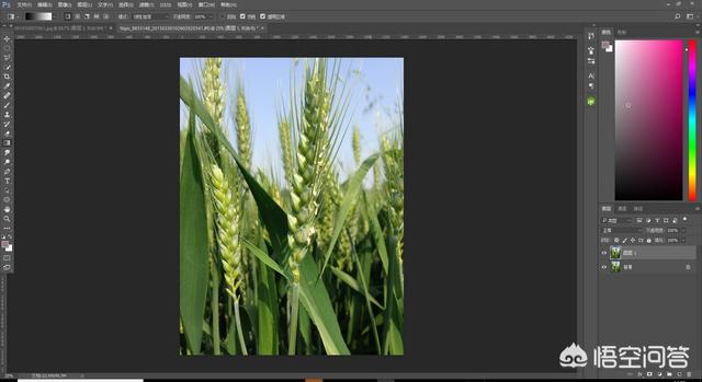 我们看到这个图片,麦子还是绿色的,叶子也是绿色的,一看就是没有成熟的,那么我们就用这几个方法来操作一次