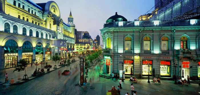 从江边的方向一直往前走,穿过这个人行通道,我们上了以后就到达了中央大街,这条充满西洋风情的大街,要追溯到1898年,当年开始修筑中东铁路,运送铁路器材的马车,在泥泞中开出一条土道,这就是最早的中央大街,因为有众多的外国人进驻经商,贸易空前繁荣,当时就已经成为哈尔滨著名的商业一条街,来到中央大街怎么能不吃一根就具有百年历史的马迭尔冰棍儿,在三九天里吃一根马迭尔冰棍儿,那感觉老爽了,除了马迭尔冰棍儿,还有哈尔滨的大列巴和红肠一样让你回味无穷。