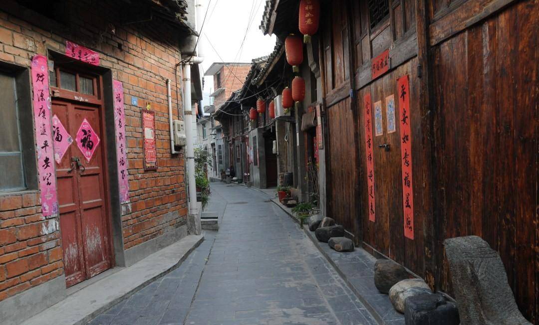 下行,下行,没多久,石碥道的前方出现了一条古街巷,街巷两边都是明清样式的木板瓦房,房檐下挑出红灯笼,上面写着“太极城”——没想到,我竟然误打误撞地闯到旬阳老城的区域了。