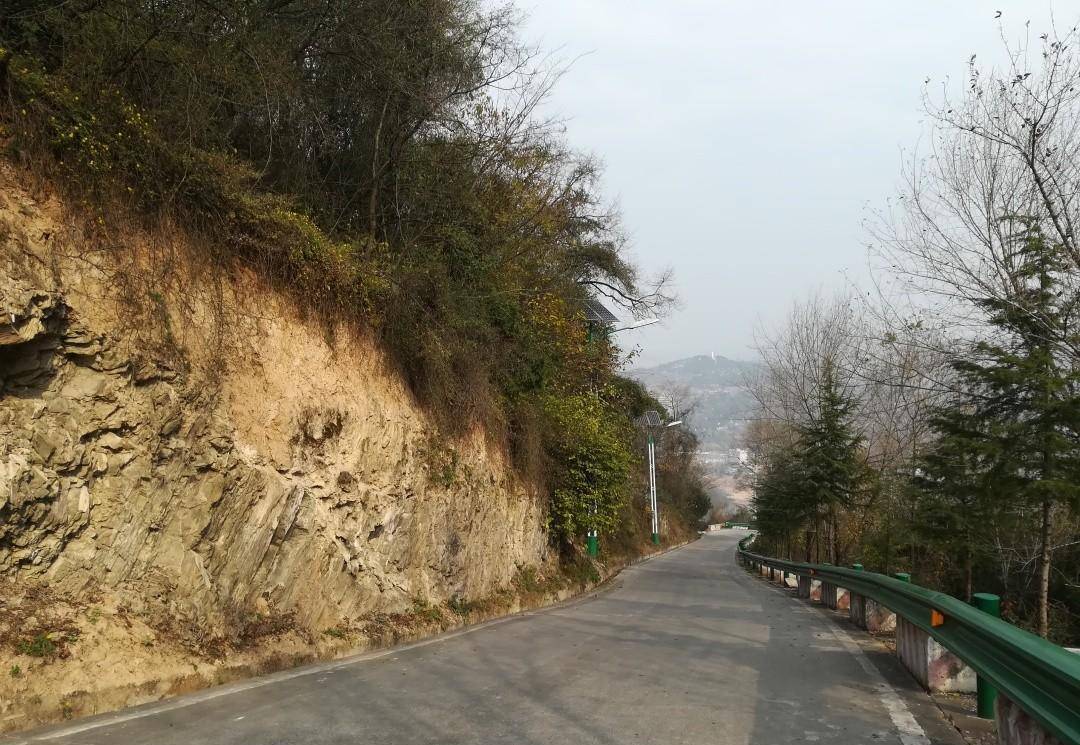 我上山的路叫观极路,是一条经过精心打造的旅游景观路。下山的路叫黄虎东路,是一条普通的水泥马路,在山腰盘盘绕绕,走到一半,我觉得绕路太多,看到路边有小路直通山下,于是就选择走小道。