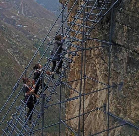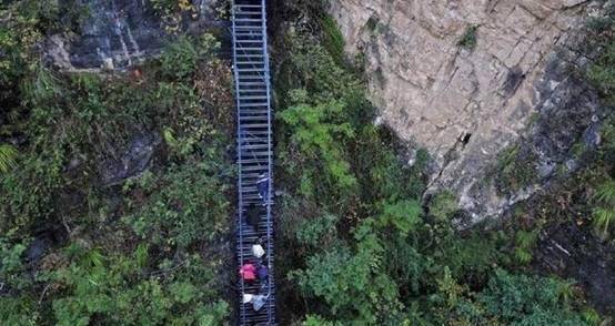 而这个“天梯”其实付出了村民许多心血,当时这个天梯还并非钢管,是用藤条、木棍编织而成,牢固程度可想而知。经过村民的改良,这个天梯才成为了如今的钢管天梯,比起以前要安全得多,成为当地一道靓丽的风景线。