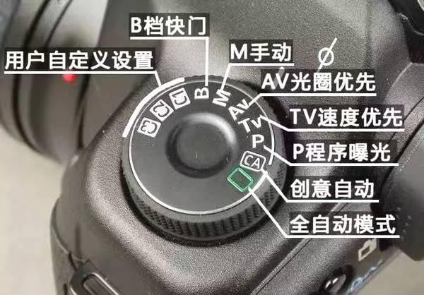 首先让我们拿起相机,在所有的单反相机的右上部分,都有一个模式转盘。通过转动这个转盘,就可以调整不同的曝光模式。