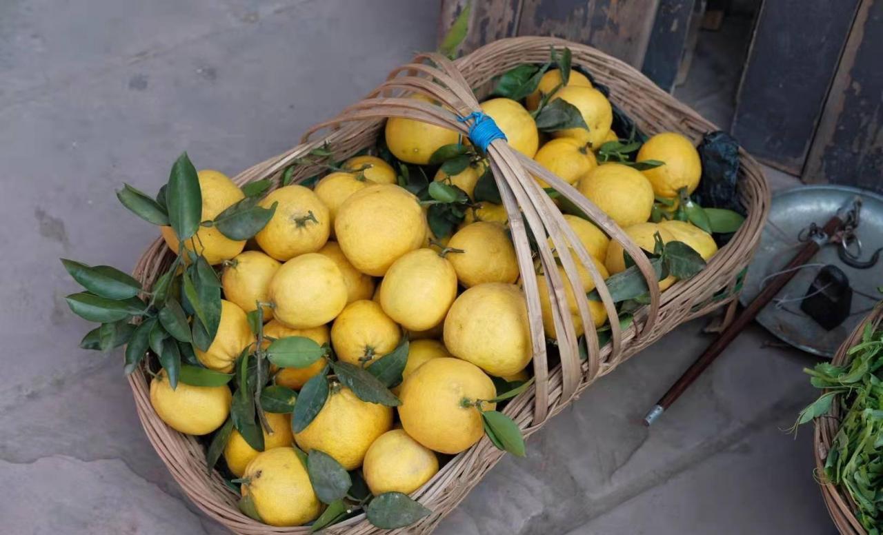 这个特产是一种金黄色的橘子,穷鬼在网上查了一下没查到它的学名,当地人叫它黄金果。黄金果,顾名思义它的颜色是金黄色的,外观比较像柠檬,只是个头要比柠檬大一点。这种特产并不在一些特产超市或者是古镇店铺里面卖,而是由洛带当地的农民装成一筐筐地在一些不起眼的角落摆地摊卖。如果大家不仔细看,根本不会发现。