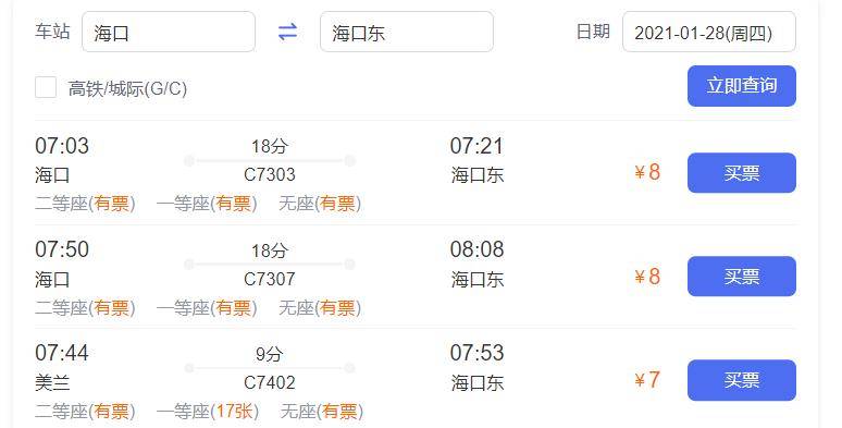 从火车到达的海口站到海口市区可乘坐S或者C开头的旅游城际列车,比公交车贵一点,但是是动车组列车,速度要快得多,一天有20多班车,几乎半小时就有一趟。