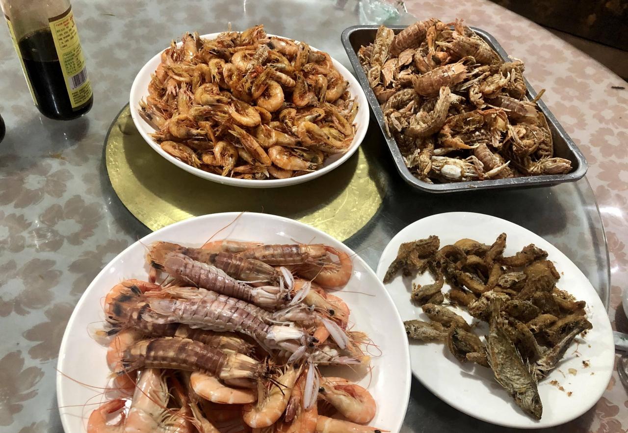 开始我以为加工是免费的,后来才知道白灼10元一斤,炸15元一斤,我们打捞了大约有9斤的海鲜,两个人根本吃不完,最后挑了一些个大的白灼,小一些的就炸了,然后带走。