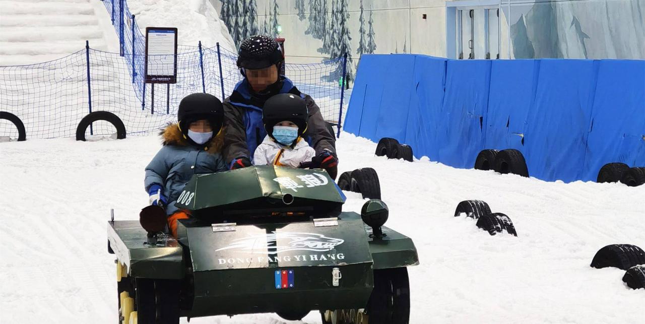 娱乐区有坦克、滑梯、冰上碰碰车等好几个项目,虽不及大型游乐园那么丰富,但也够孩子们疯上一小时了。