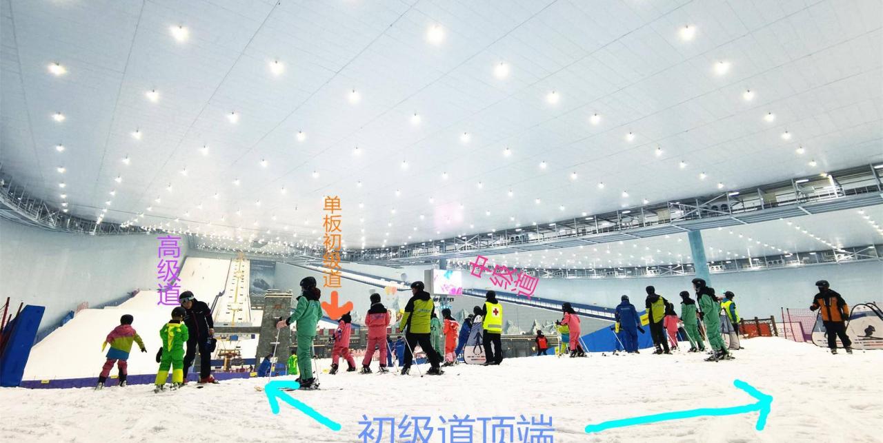雪场内有三条初级道,其中两条是双板的,长度约为50米,很短很短,作为初体验来说不错,但作为有一点基础的初学者来说,感觉很不过瘾而且浪费时间,这是我最为纠结和吐槽的地方。下图就是双板的初级道