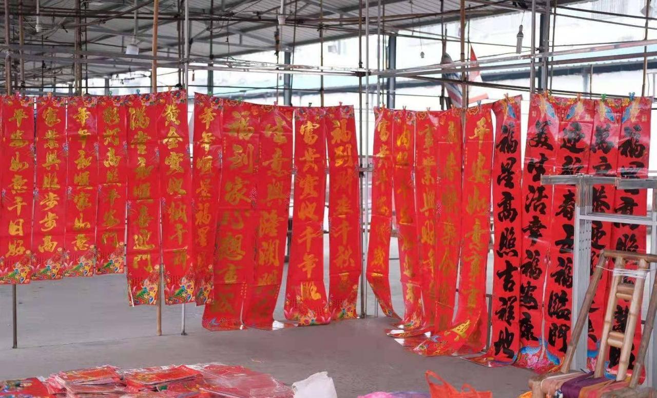 一些讲究点的人家要自己想春节对联,然后到外面卖春联的商家处找人提笔。所以,在成都卖春联的地方,大家往往会看到一个景象,春联有印的,也有黑色毛笔手写的,手写的价格要贵一点。