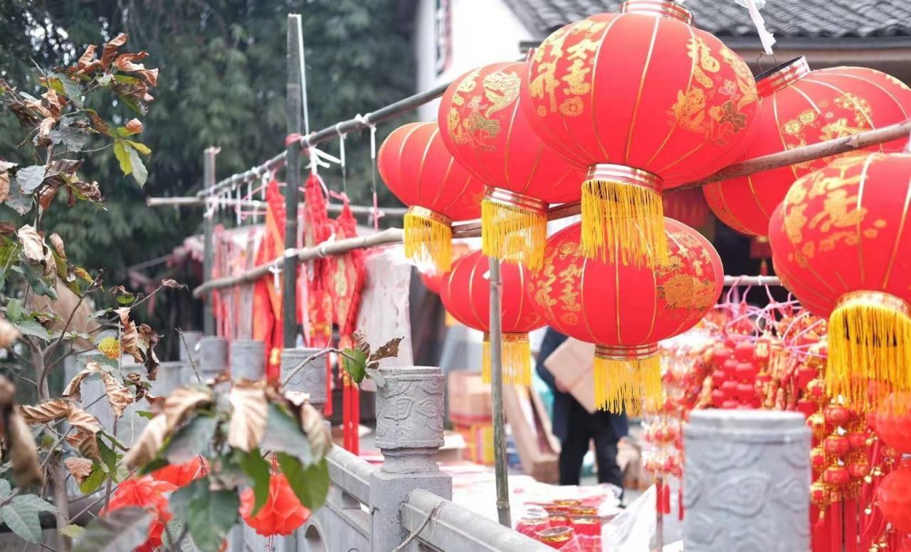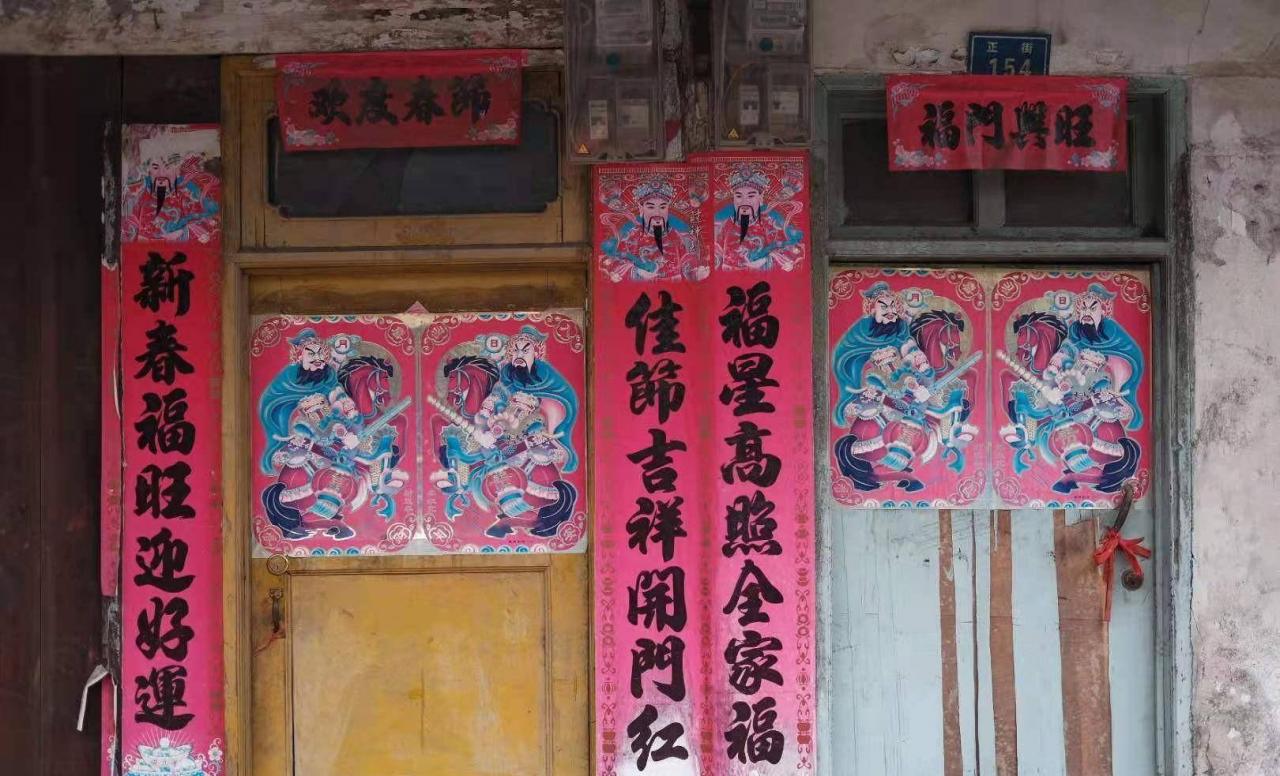 穷鬼随意在小镇上逛了逛,发现小镇上很多人家的门票都还贴着往年的对联,挂着以往的灯笼。问了一下当地的居民,才知道在成都,很多人家都是如此,将象征着吉祥如意的对联和灯笼挂一年,来年春节再替换,意思是希望好运能留一年。