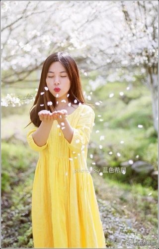 1.在梨花,桃花,樱花树林中拍全身人像,选景一定要选花开的整齐点的,人物离树有一定的距离,拍出的照片有空间感。光圈5.6左右,不能把花完全虚化成一片。拍特写,选最大光圈或小一档光圈,完全虚化背景。也可选花枝作为前景,人站在花枝后拍摄出万花丛中美人笑的意境。
