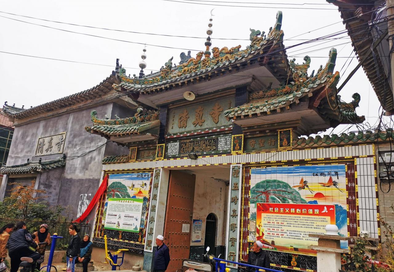 当我来到望鲁集的时候,看到的北街清真寺虽然是上世纪八十年代重建的,但是整座清真寺给人以古朴沧桑的感觉,尤其是紧挨着望鲁集北街的朝真殿背面,和我在青州看到的历史建筑青州真教寺特别像,所以也感受到了这座清真寺的悠久历史。在清真寺的门口以及寺里面,我还看到了许多古老的石质建筑构件,这些都是六百多年前所建的清真寺遗留下来的一些柱础等构件,更让我感受到了这里的古老沧桑。