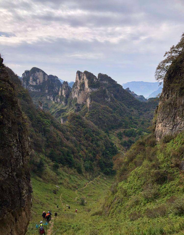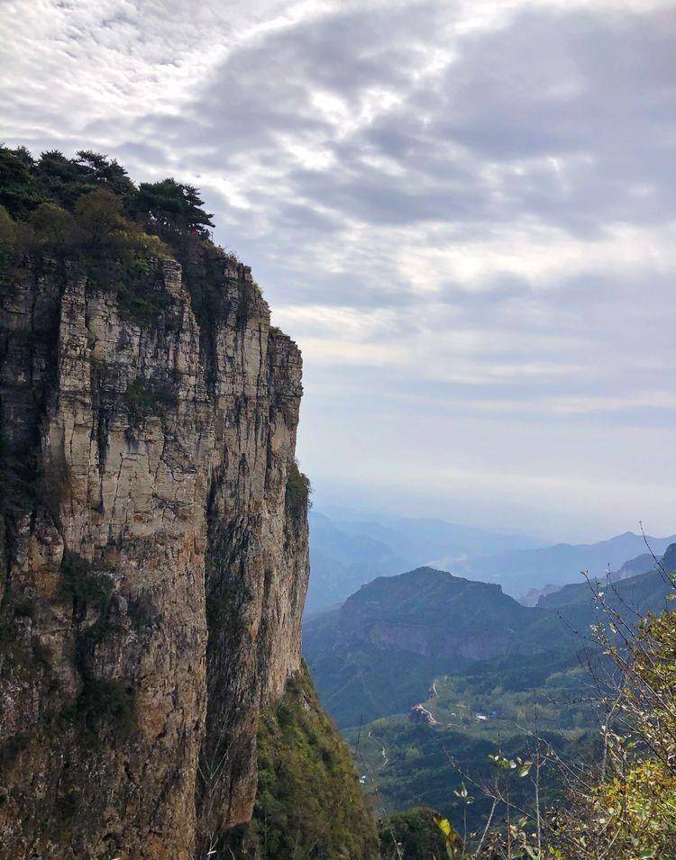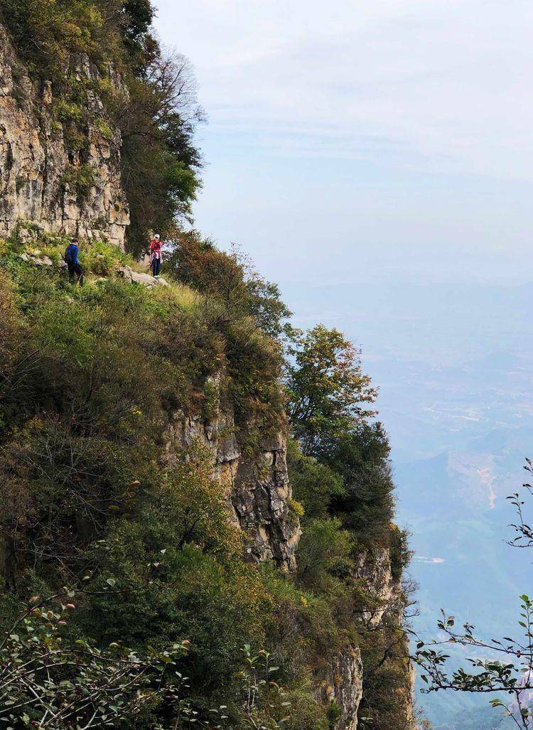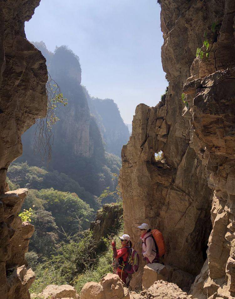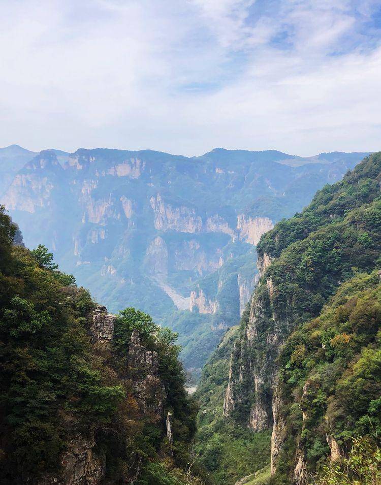 脚下石崖跌落百米,崖下的峡谷越展越宽阔,远方绿野中的隐隐村落,已是中原大地的河南了。