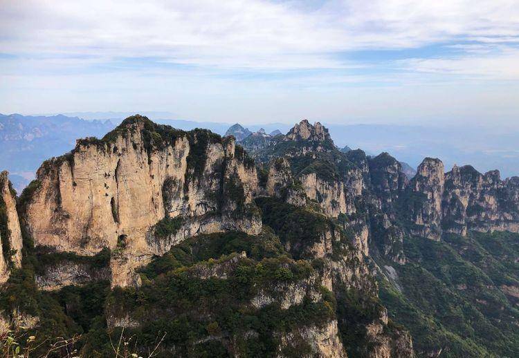 太行云顶远眺,一系山脉自西向东逶迤而下,千仞峭壁裸露着浑黄肌肤,散发着粗旷原始的气息。