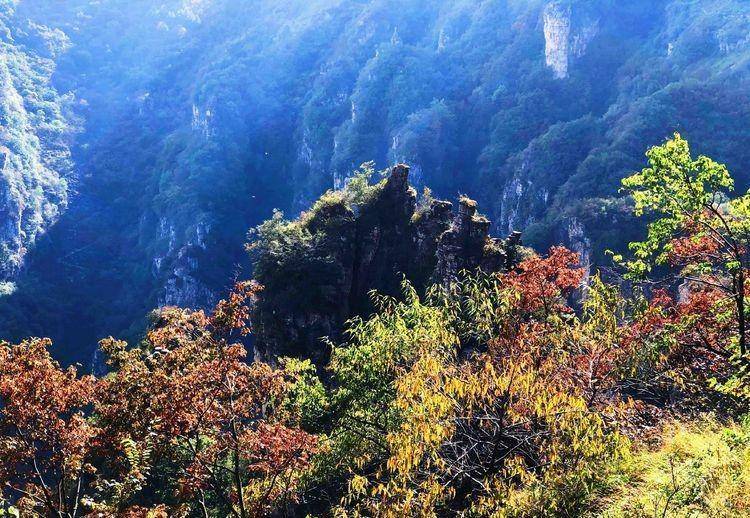 或红或黄或橙的树叶,点缀在千峰万壑,高山峡谷之间,秋天将她那最华丽的色彩,绽放在太行之巅。