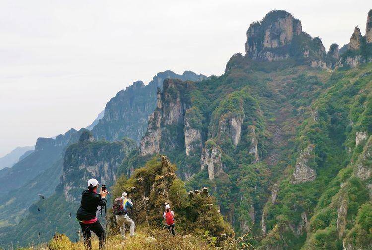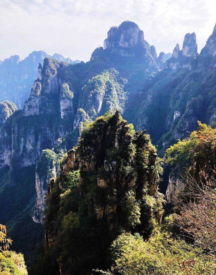 站在王莽岭重峦深处,奇峰林立环绕身边,山谷的风不冷不热,带走我们所有的烦恼,我们的心也随山风轻舞飞扬。