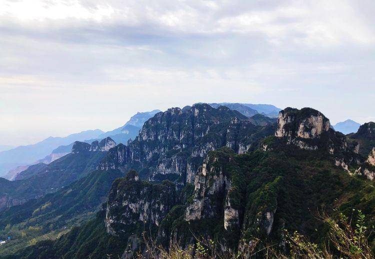 据说南太行的山峰并不是地壳局部隆起形成的,而是古老的地平面经漫长岁月的向下侵蚀而留下的遗存,故一条条山脊几乎都在同一个平面上昂然而立。