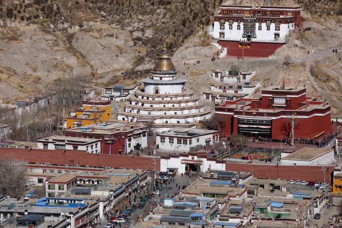 从江孜古堡步行到白居寺只需要10多分钟,修建于1427年,里边的白居塔就像一朵莲花,是一座非常有历史意义的建筑。