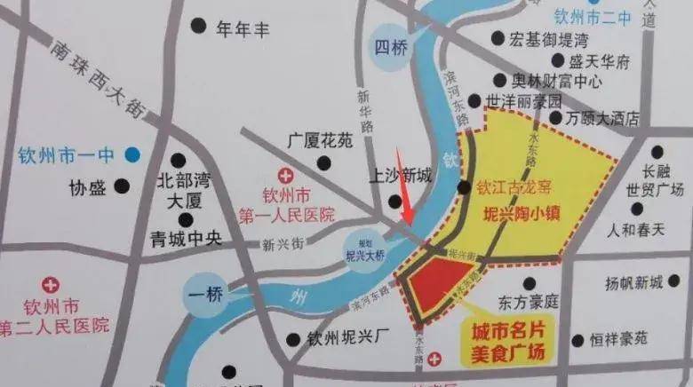 其实近年来钦州新建的美食广场真不少,吾悦广场风情街,北部湾一号美食广场等。然而这个美食广场有些不一样,因为这边目前是断头路,为什么要投资那么大建设一个美食广场?原来这边要消灭断头路,还有修建六桥把新华路连接通往坭兴路。