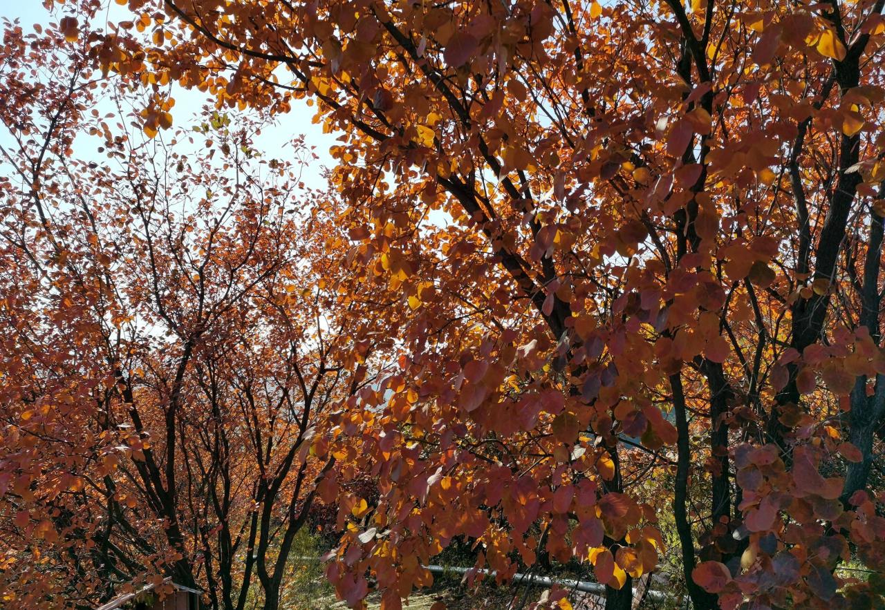 远眺红叶区,也别有一番风味: