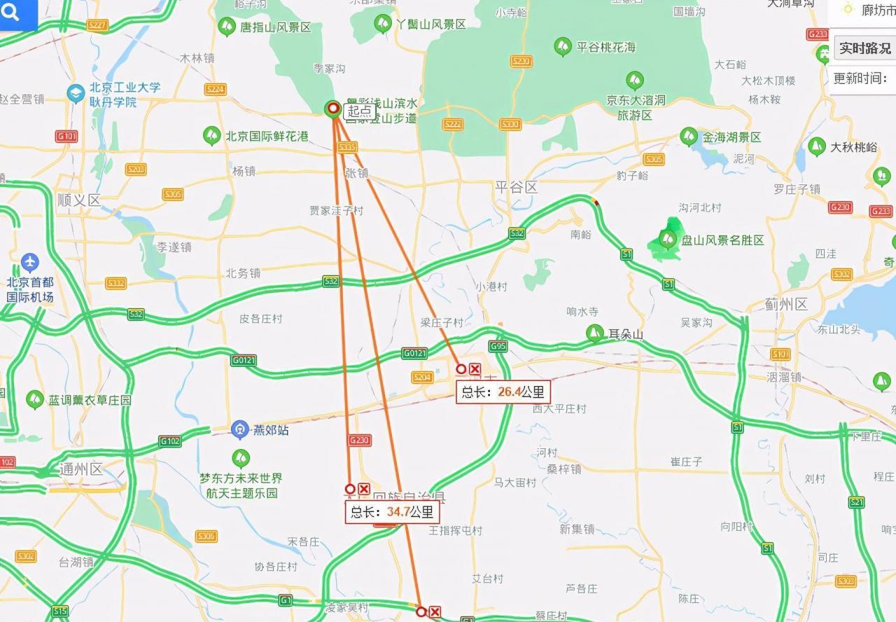 我们再来看看该公园距离廊坊北三县的距离:
