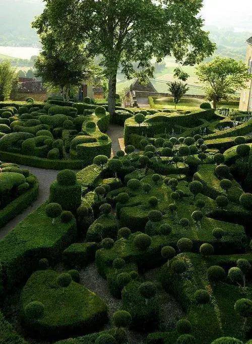 花园中的黄杨给人极大的想象力,其圆润的造型和曲折的路径赋予花园柔软和浪漫的气息,和多尔多涅河谷中的山丘形成和谐。