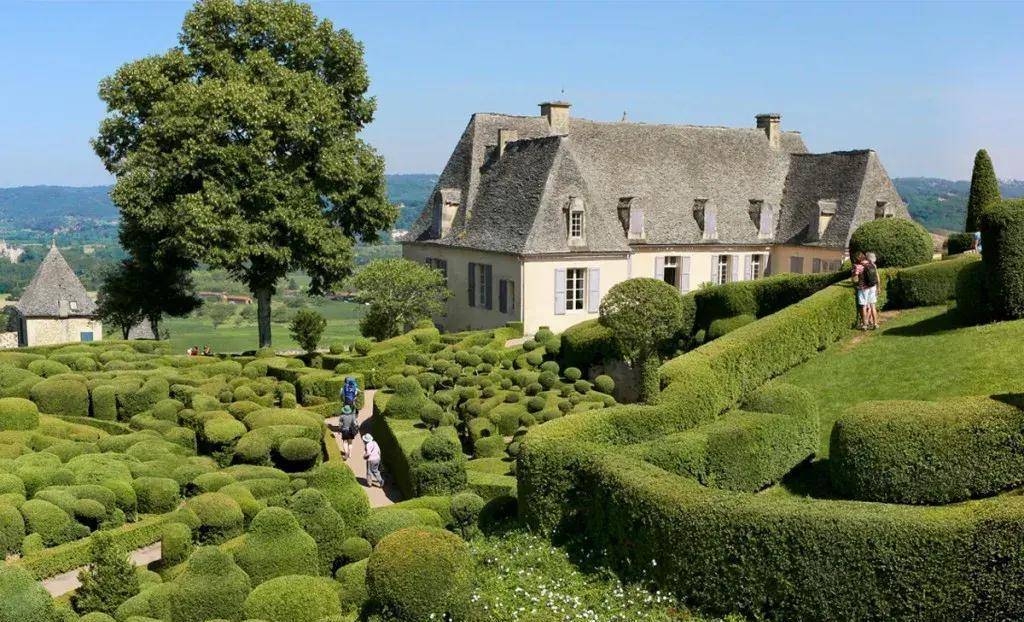 花园依山而建,不远处是多尔多涅河,朱利安·德·塞瓦尔从多尔多涅河山谷起伏的群山中汲取灵感,用30年的时间种下15万棵黄杨,并将它们修剪成山峰的样子,使花园拥有独一无二的特色。