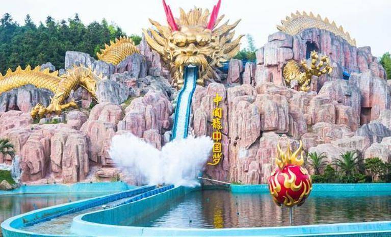 园内有处名为中国龙中国梦的标志性建筑,龙在我国传统社会之中是吉祥的象征,是文化的传承,只见那蜿蜒曲折的龙体盘绕着巍峨的山体,龙头置于顶峰,游客乘船只途径水道刹那将悬空而上,体验别样的惊险刺激与巨龙一般坚毅的精神,这处中国龙中国梦是银杏湖休闲度假区必打卡的项目网红景点。