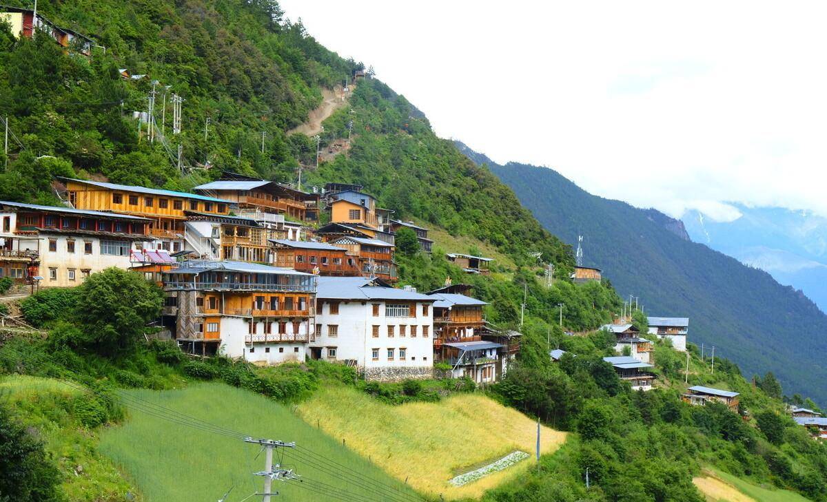 丙中洛镇是一个藏传佛教、天主教、基督教三教并存的地方,这里的建筑以仿藏式的建筑为主,有木楞房、杆栏式建筑和半杆栏半土垒式建筑等,用石板盖顶。
