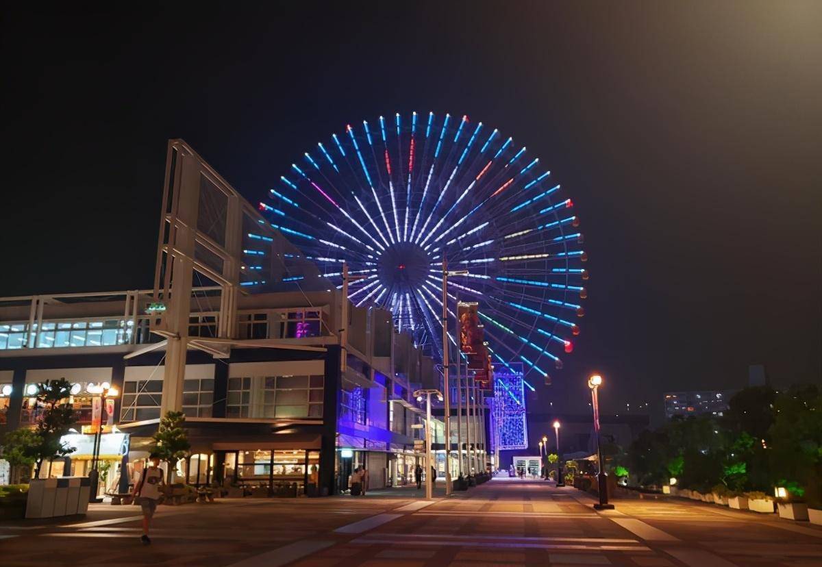 高达112.5米的天保山摩天轮可曾经是世界上最大的摩天轮,里面有四列透明的限量车箱,载客量 480 人,上演灯光秀,周边景色一览无余。,高大的索道除了无敌的视野之外,透明的车厢除了屋顶外连地板都是透明的,可以看到所有大阪港的美丽景色还有航行的圣玛莉号。