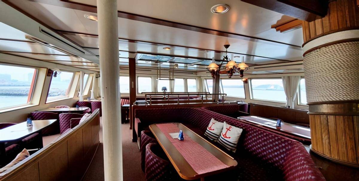 船上分为室内、室外两种,基本上可以站到甲板上,欣赏海港的美景,不论是船头或船尾,都有不一样的景致,旁边的仓库、乐园全都尽收眼底。船舱内的话也有免费、付费包间,也有酒吧跟轻食贩售,有兴趣可以参考享用。
