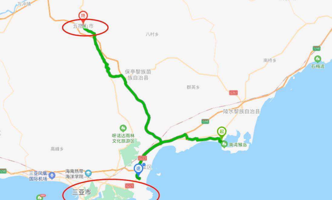 今天虽然经过三亚,不过呢三亚是一个值得停靠几天的地方,停靠游玩的部分就跳过了,喜欢的多住几天,其实不住就直接当天到五指山住下来也可以,毕竟三亚的几个海湾好的海景酒店,价格都是贵的很。经过保亭,到达五指山就离开大海,进入热带气候的山区里了。