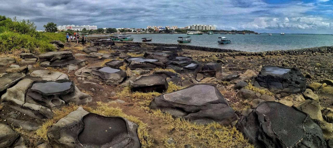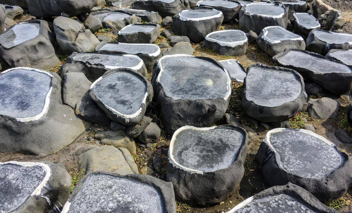 盐田距今已有1200年,制盐工艺是从煮海为盐演变为晒海成盐的成熟工艺,产出的盐巴是经太阳晒干的海滩泥沙浇上海水过滤成卤水后,浇洒在玄武岩石槽上晒干而成。千年古盐田是我国最早的一个日晒制盐点,也是我国最后一个保留原始日晒制盐方式的古盐场。在这里会有很多老乡卖盐焗鸡,其实还挺好吃的。