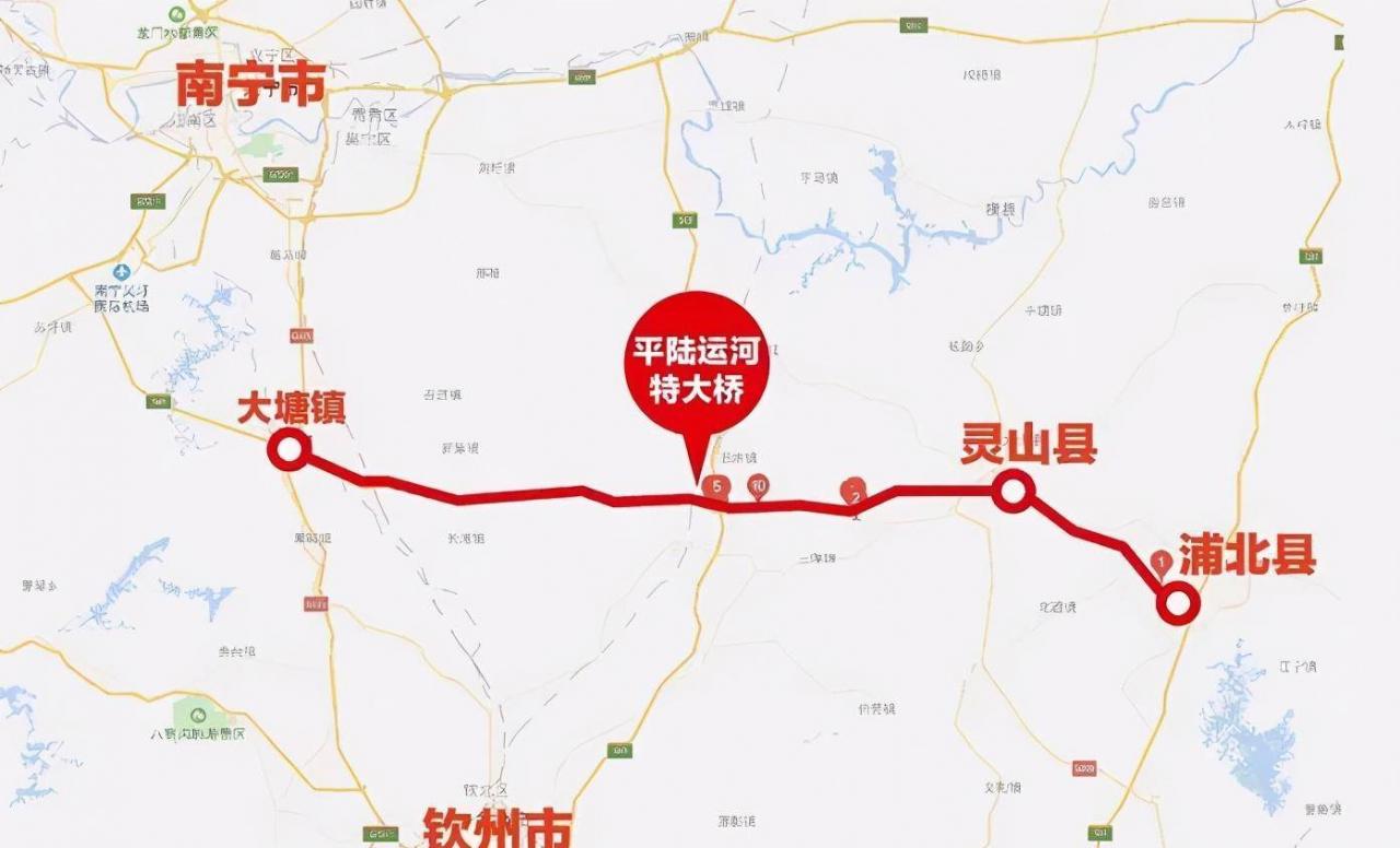 可能部分朋友已经猜到了这个线路,没错,这就是大浦高速。作为广西内高速路线的重要规划之一,大浦高速在建造的时候也是备受人们的重视。根据资料的显示,全长在123.7公里的它,总计耗资也是高达百亿之多,其在建成之后将会把浦北县、灵山县、钦州市钦北区与南宁市良庆区联络在一起,预计设定时速为每小时120公里,而且也是将会按照双向四车道的规模来打造。