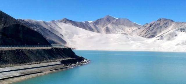 白沙湖位于新疆喀什的帕米尔高原,面积约为44平方千米,其形成是因为慕士塔格峰冰川融水流经布伦口时形成的沙滩河流。因其白沙沉淀聚集,故而称为白沙湖。当水位下降时,裸露的白沙在风的作用下又被堆积上白沙山上,融水丰沛时,又随着水流沉积于白沙湖,年年往复。