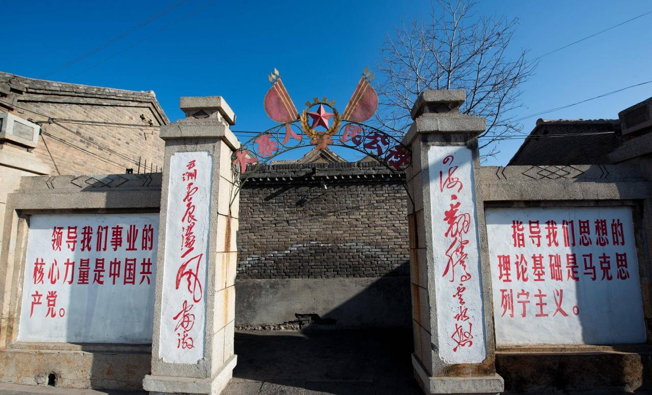 大寨人民公社旧址是当时人民公社代表性建筑,建于1966年,坐东朝西,院内有东窑10孔,北窑3孔,北排房3栋,保存完整。旧址的大门时代印记鲜明,其顶部用钢筋铁皮制作的“大寨人民公社”六个大字清晰可见,依伟人诗词书写的对联记录着人民公社发展的历史轨迹。